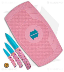 The Blade HQ Takedown Shop Mat is vibrant pink silicone imbedded with colorful sprinkles and is sure to stand out on that work bench! We in the knife community are all well acquainted with knife maintenance. Occasionally, knives need to be disassembled, cleaned, lubricated, reassembled, and tuned to perfection. This mat makes it so knives will remain stable while being maintained. It has pockets along the top and sides that hold tools and parts without letting them get away. It’s nice and wide, so you can take apart even your biggest folder and never want for more space.