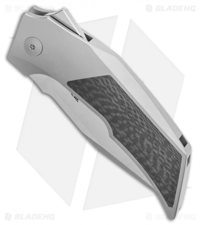 Experience Reate quality in a scaled down EDC friendly size with the Tashi Bharucha designed T3000. This T3000 model showcases a bead blasted titanium handle with Carbon Fiber inlays and a satin finished recurve blade. Ceramic bearings facilitate smooth and fast deployment of the highly effective blade. This sturdy T3000 folding knife offers distinctive Bharucha style and a pocket friendly design.